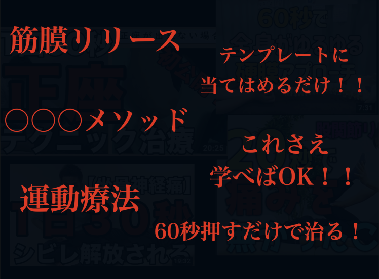 今すぐに気づいて欲しい!!筋膜リリース、マッサージ、運動療法、マニュピレーション、たった1か所押すだけなどはどれもテクニックを当てはめるだけ治療法です。もちろん、その場での効果はあります。ですが、なぜその場では改善してもすぐに痛みが戻ってしまうのでしょうか?そして腰痛を治しきることができないのか?