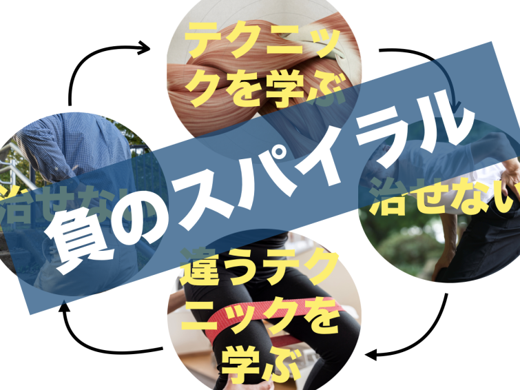 その答えは、どのセミナー団体も結局テクニックや知識を当てはめるだけの方法しか教えず、たまたまその患者さんに当てはまれば良くなる。しかし当てはまらなければ、永遠と負のスパイラル(テクニックを当てはめるだけ)に陥ります。もちろん、ファンになるどころかクレームの嵐で紹介などは起こるずがないです。